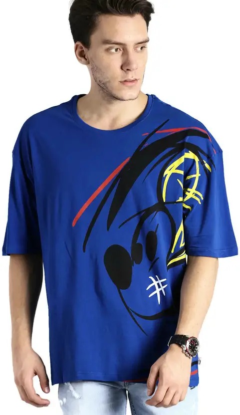 Men Printed Round Neck Cotton Blend Blue T-Shirt