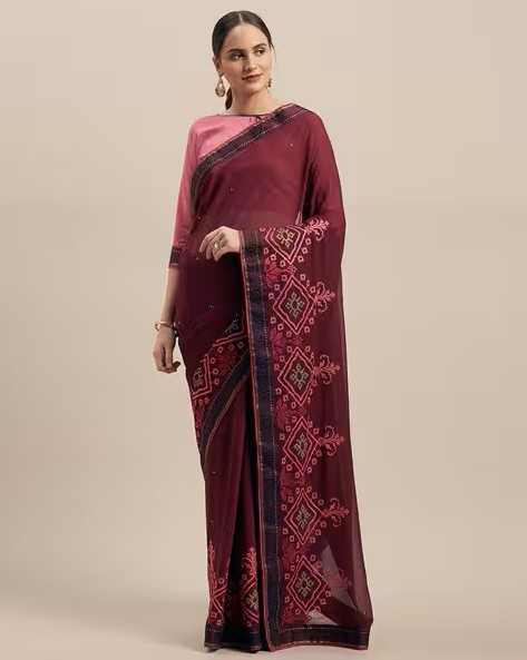 Women Embroidered Saree with Lace Border