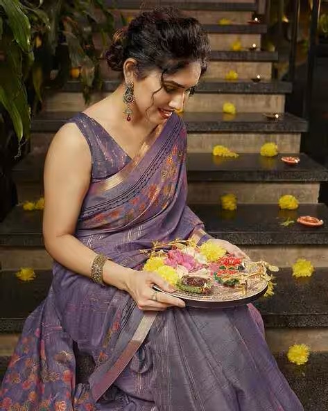 Floral Print Saree with Contrast Border