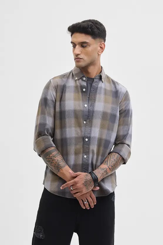 Men Regular Fit Checkered Button Down Collar Casual Shirt