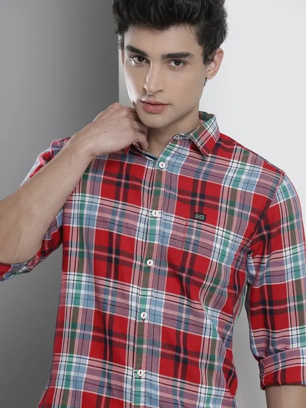 Men Slim Fit Checkered Spread Collar Casual Shirt