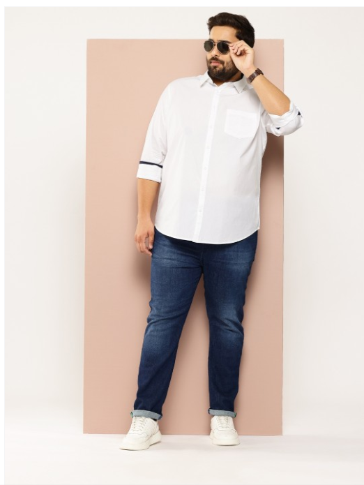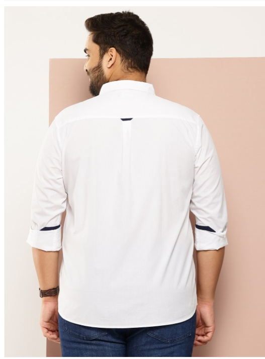 White solid opaque Casual shirt ,has a cutaway collar, button placket, 1 patch pocket, long regular sleeves, curved hem