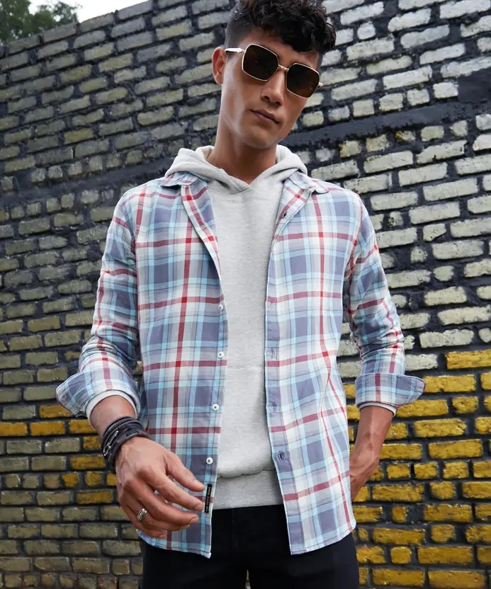 Men Regular Fit Checkered Spread Collar Casual Shirt