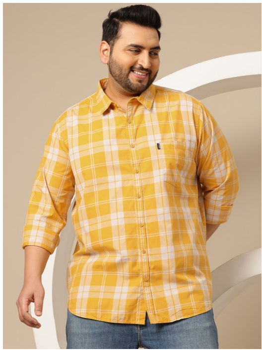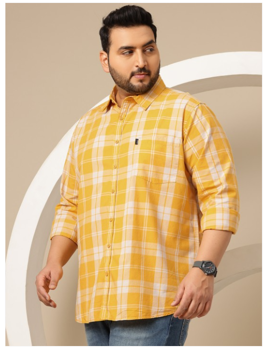 Yellow tartan checks checked opaque Casual shirt ,has a spread collar, button placket, 1 patch pocket, long regular sleeves, curved hem
