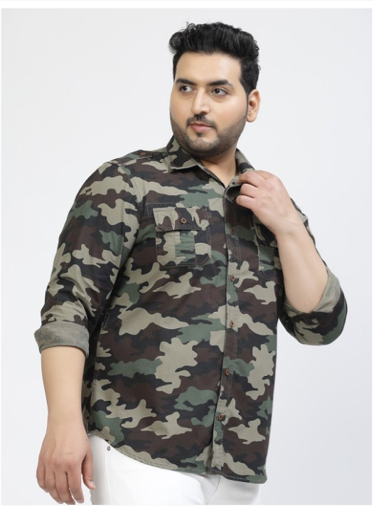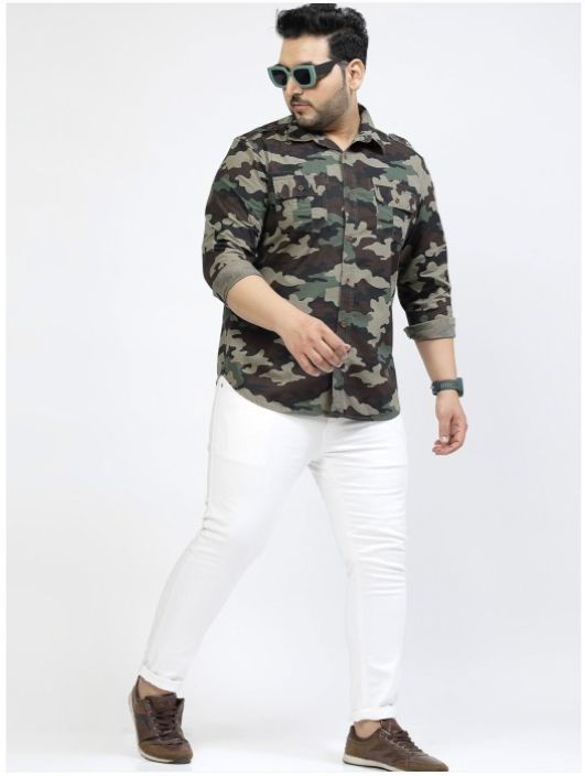 Multicoloured camouflage printed opaque casual shirt ,has a spread collar, button placket, 1 patch pocket, long regular sleeves, curved hem