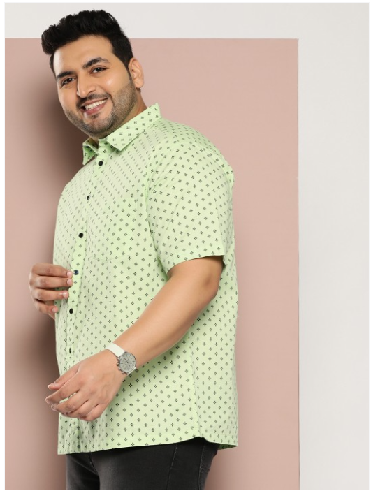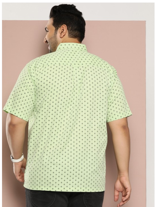 Green floral printed opaque Casual shirt ,has a spread collar, button placket, 1 patch pocket, short regular sleeves, curved hem