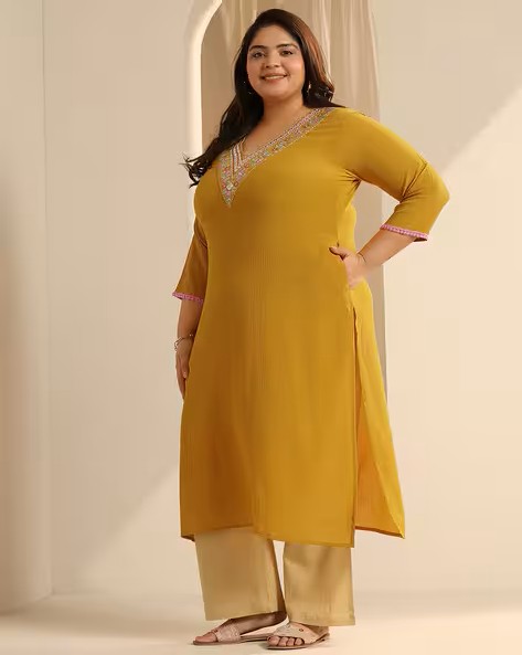 Women Embroidered Straight Kurta