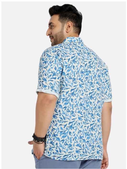 White & blue floral printed opaque casual shirt ,has a spread collar, button placket, long regular sleeves, curved hem