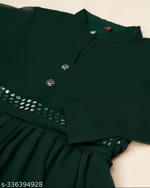 Latest Designer A-Line Georgette Dress With Mirror Belt For Women Wear