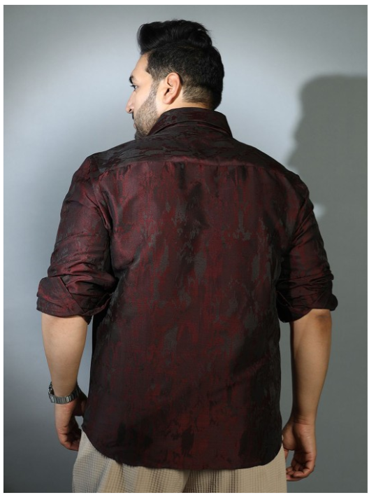 Red textured opaque Casual shirt ,has a spread collar, button placket, na pocket, long roll-up sleeves, curved hem