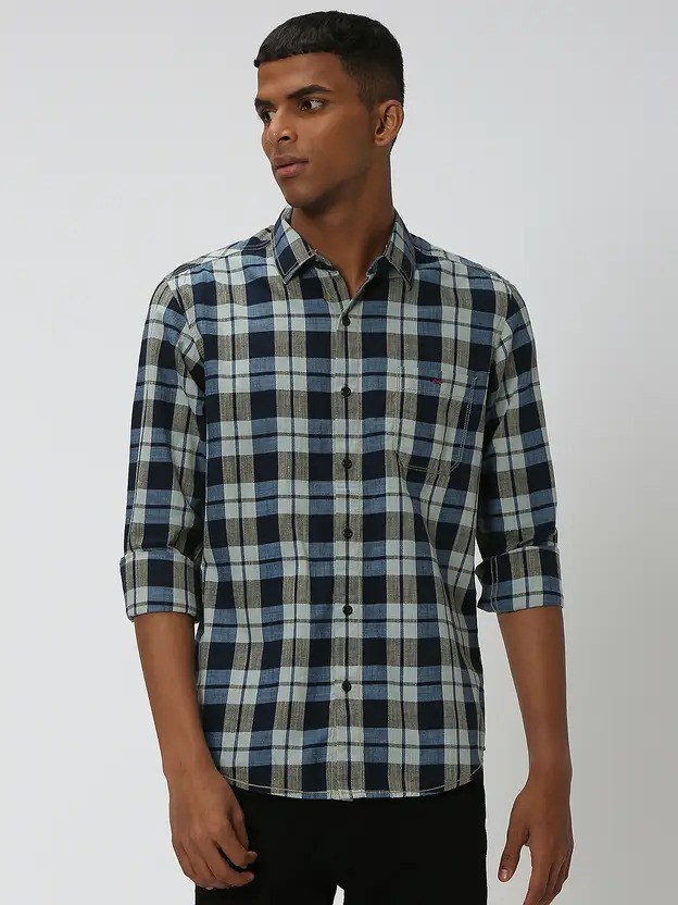 Men Slim Fit Checkered Spread Collar Casual Shirt