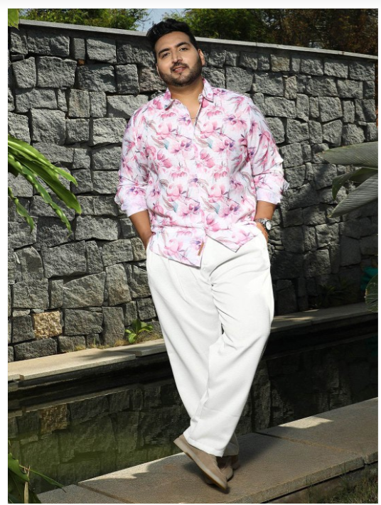 Pink graphic printed opaque Casual shirt ,has a spread collar, button placket, na pocket, short regular sleeves, curved hem