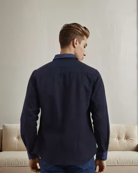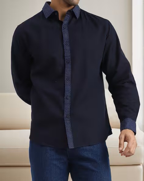 Shein Spread Collar Contrast Trim Full Sleeves Shirt