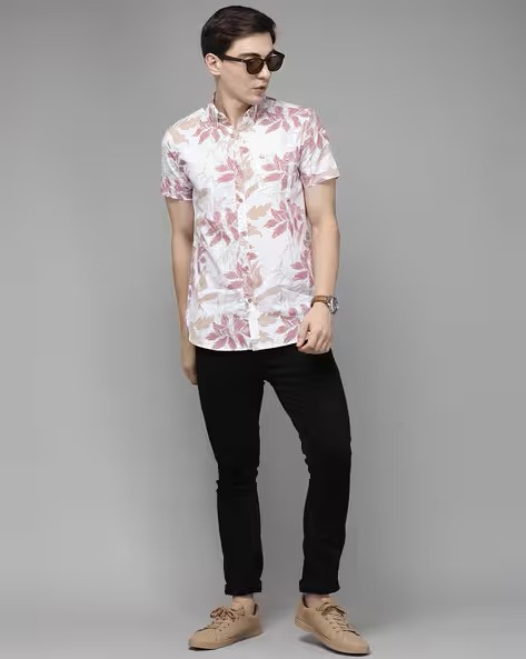 Men Floral Printed Slim Fit Shirt
