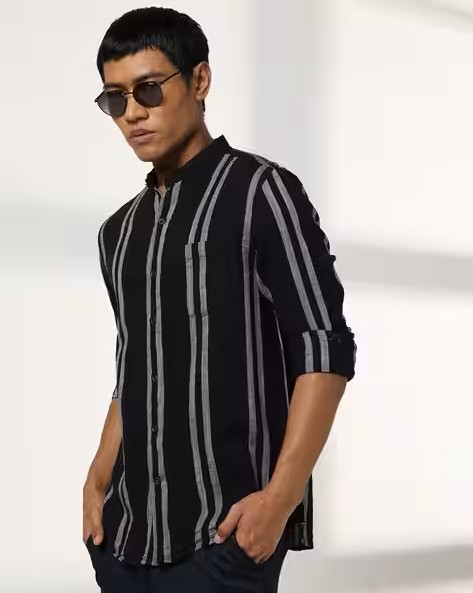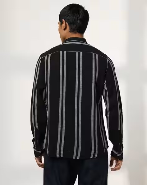 Men Striped Regular Fit Cotton Shirt with Patch Pocket
