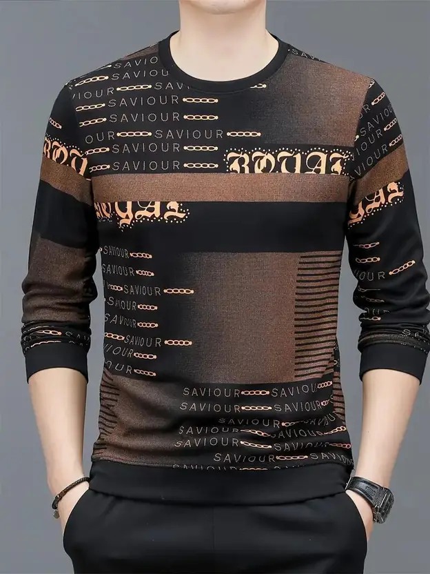 Men Printed Round Neck Polyester Brown T-Shirt