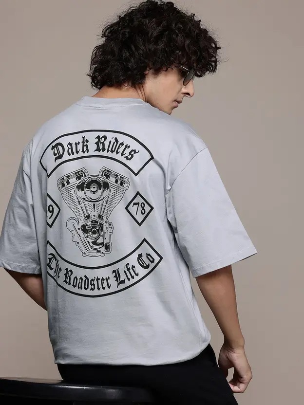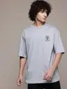 Men Printed Round Neck Pure Cotton Grey T-Shirt