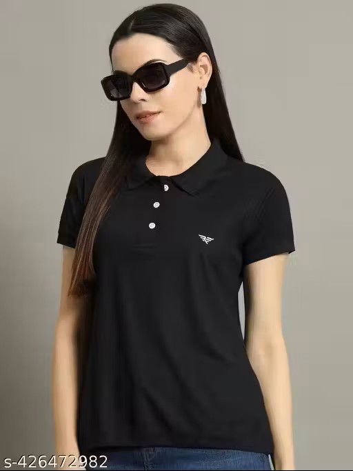 RISS Women Solid Half Sleeves Polo Neck T-shirt. Stay effortlessly stylish and cool this summer with our Women's Polo Neck T-Shirt. Crafted from lightweight and breathable fabric, this t-shirt is perfect for warm days and balmy evenings. The polo neck design adds a touch of sophistication while offering a comfortable fit that complements any casual or semi-formal outfit. Available in a range of vibrant colors and classic neutrals,, our Women's Polo Neck T-Shirt is your go-to choice for both comfortable style.