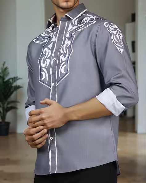 Shein Spread Collar Contrast Piping Tribal Print Shirt