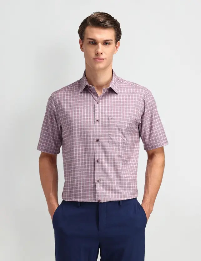 Men Regular Fit Checkered Spread Collar Formal Shirt