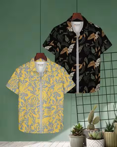 Pack of 2 Boy Regular Fit Leaf Print Shirts