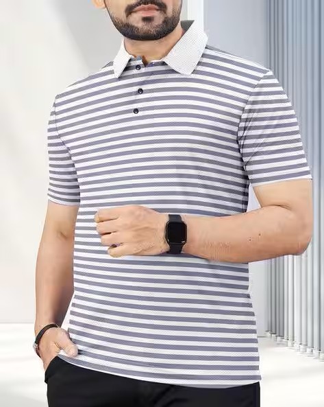 Men Stripes Regular Fit Polo T-shirt
