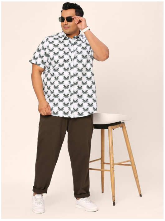 Olive green conversational printed opaque Casual shirt ,has a spread collar, button placket, 1 patch pocket, short regular sleeves, curved hem