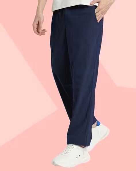 Men Straight Fit Track Pants with Drawstring Waist