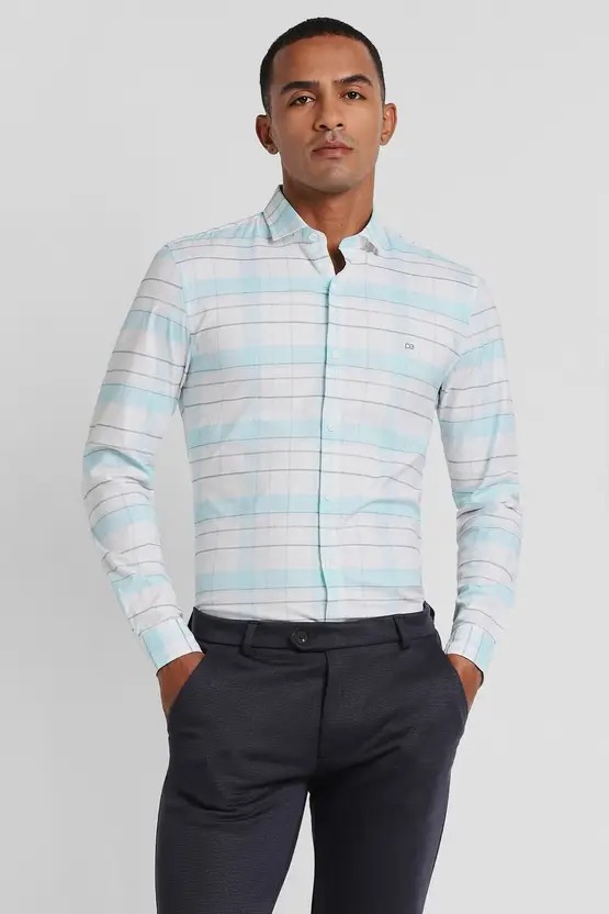 Men Super Slim Fit Checkered Spread Collar Formal Shirt