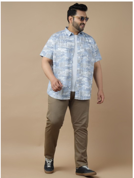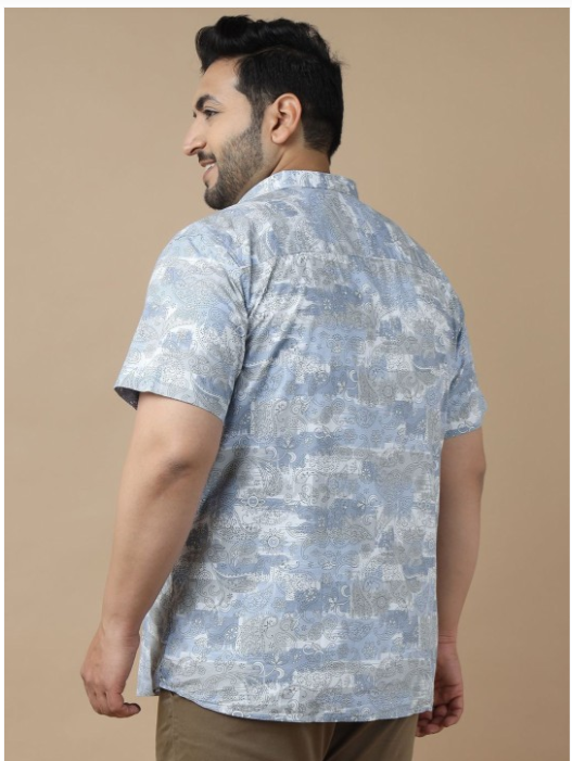 Grey ethnic motifs printed opaque Casual shirt ,has a spread collar, button placket, 1 patch pocket, short regular sleeves, curved hem