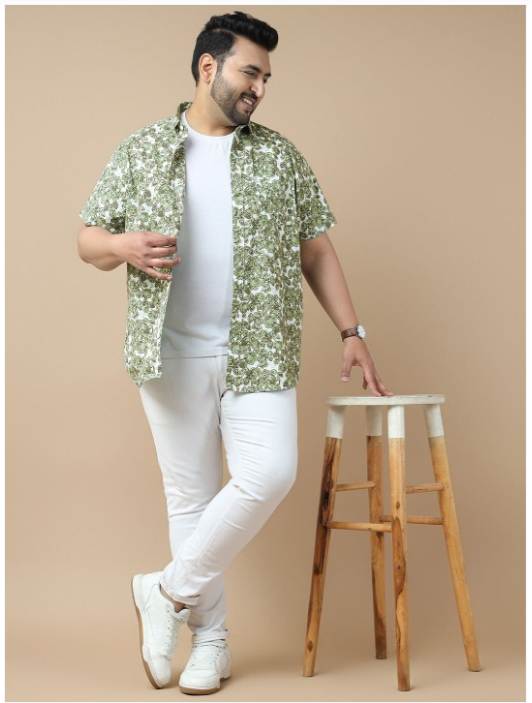 Green floral printed opaque Casual shirt ,has a spread collar, button placket, 1 patch pocket, short regular sleeves, curved hem