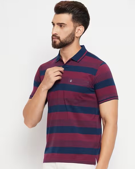 Striped Polo T-Shirt with Patch Pocket