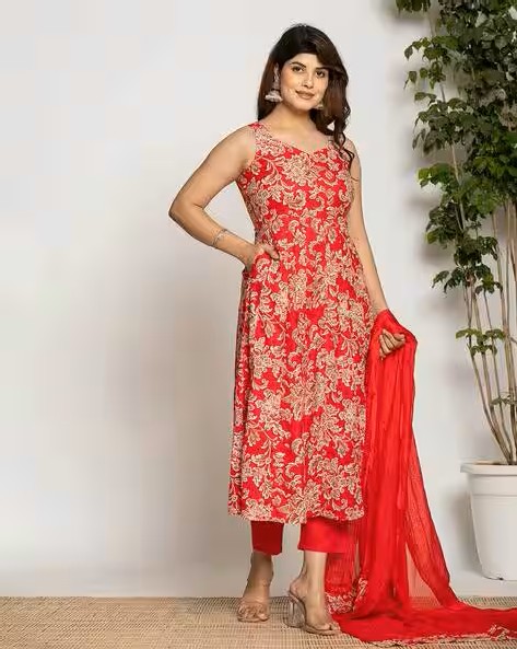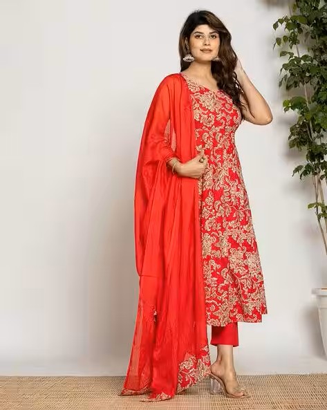 Women Floral Print Anarkali Kurta with Pants & Dupatta