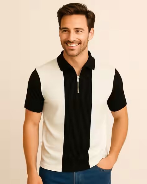 Men Colourblock Slim Fit Polo T-Shirt