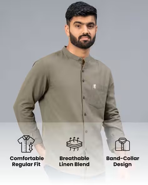 Full-Sleeves Shirt with Band-Collar