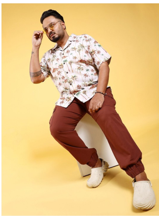Beige & brown plus size conversational printed opaque Casual shirt ,has a cuban collar, button placket, short regular sleeves, curved hem