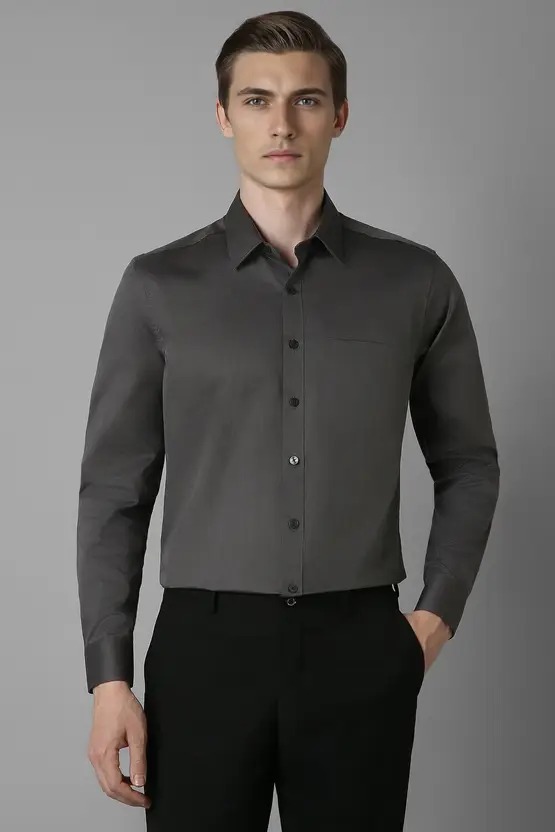 Men Slim Fit Self Design Spread Collar Formal Shirt