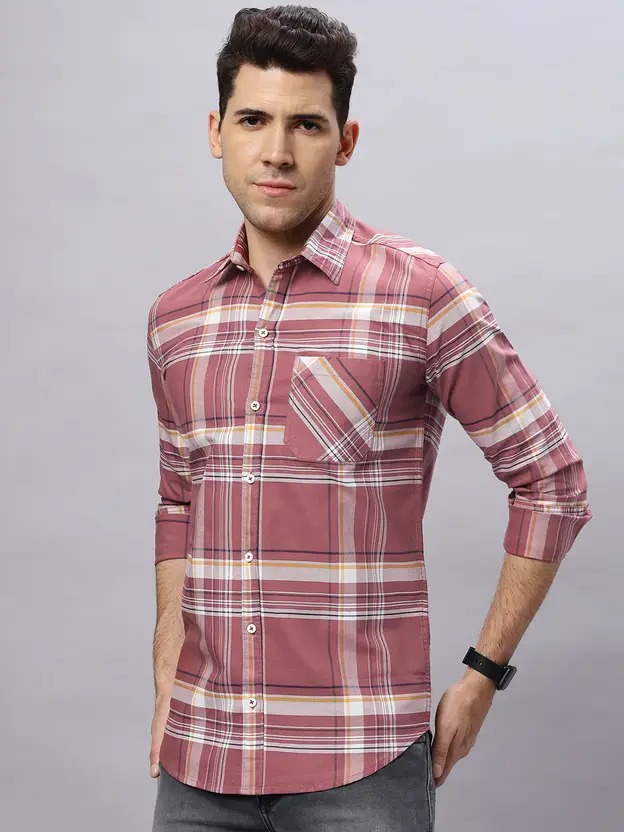 Men Slim Fit Checkered Spread Collar Casual Shirt