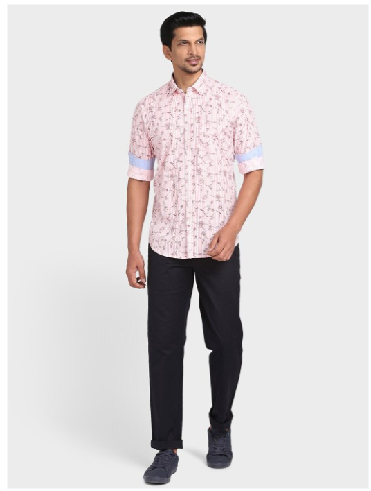 Tailored Fit Floral Printed Spread Collar Cotton Casual Shirt
