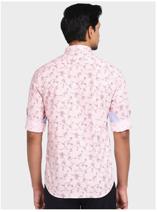 Pink floral printed opaque Casual shirt ,has a spread collar, button placket, long regular sleeves, curved hem