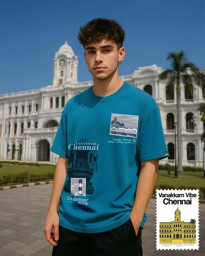 Oversized Men Graphic Print Round Neck Pure Cotton Blue T-Shirt