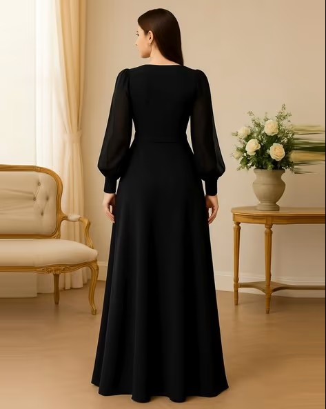 Women Fit & Flare Dress with Puff Sleeves