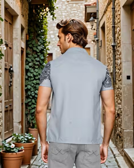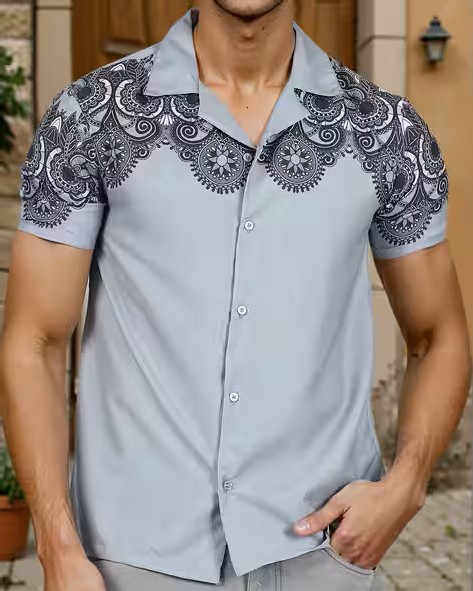 Shein Bohemian Cuban Collar Short Sleeve Geometric Print Shirt