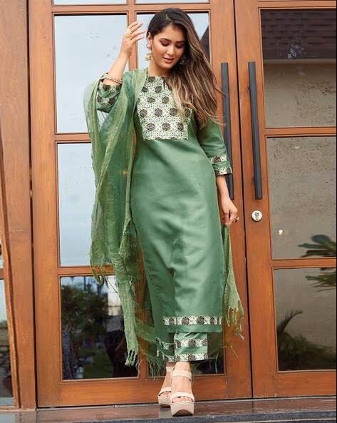 Women Embroidered Straight Kurta Set