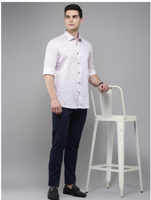 White, purple and orange ethnic motifs printed opaque casual shirt, has a spread collar, button placket, 1 patch pocket, long regular sleeves, curved hem.