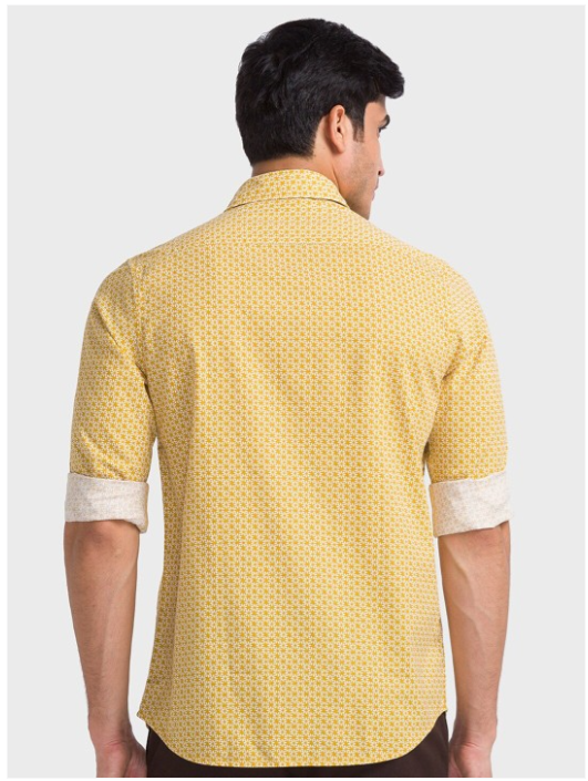 Yellow & white floral printed opaque casual shirt ,has a spread collar, button placket, long regular sleeves, curved hem