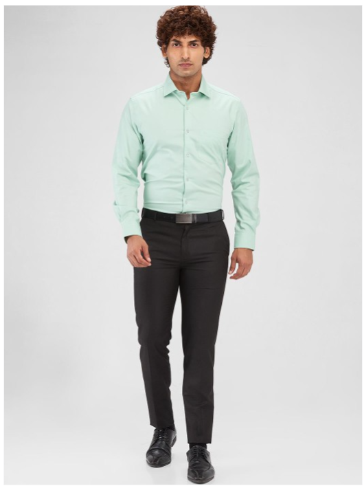 Green solid opaque Casual shirt ,has a spread collar, button placket, 1 patch pocket, long regular sleeves, curved hem