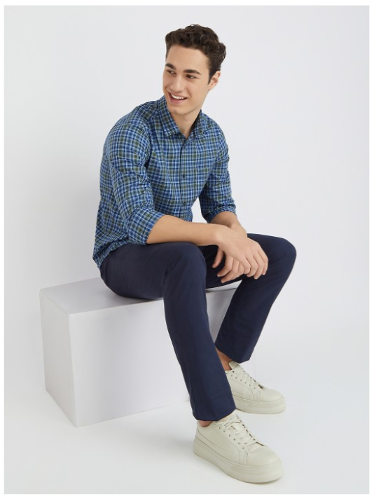 Blue tartan checks checked opaque Casual shirt ,has a spread collar, button placket, na pocket, long regular sleeves, curved hem