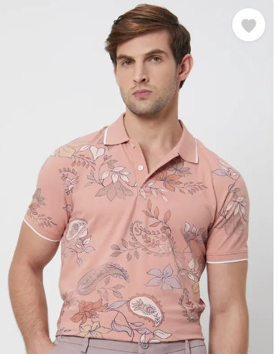 Men Printed Polo Neck Cotton Blend Pink T-Shirt