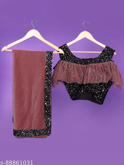 This ready-to-wear saree with a stitched blouse, made from stretchy lycra fabric, offers a perfect fit and comfort with its free size design.